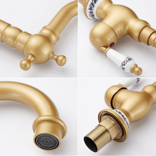 Miscelatore Rubinetto Antico Monocomando per Lavabo Rubinetto Alto da Cucina o Bagno in Ottone Calda e Fredda del Rubinetto (Oro)