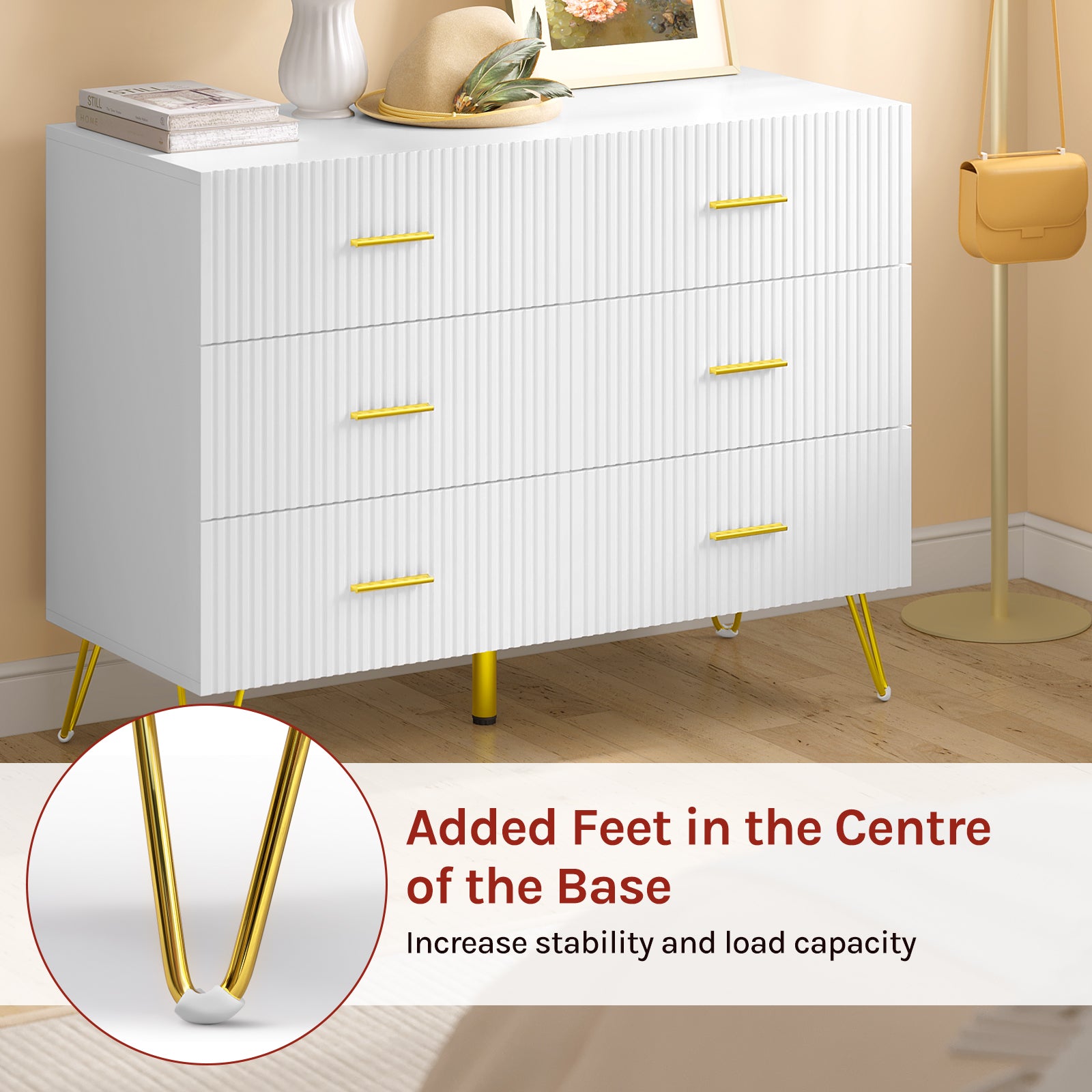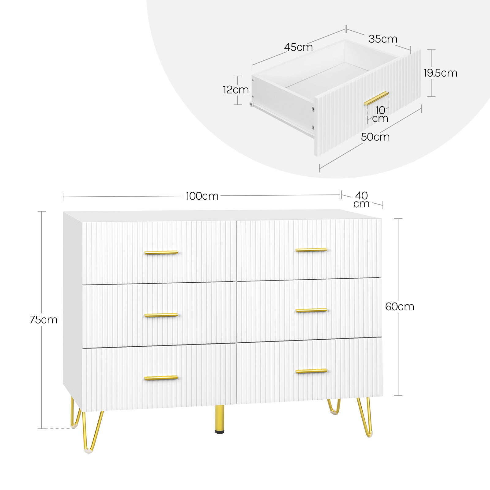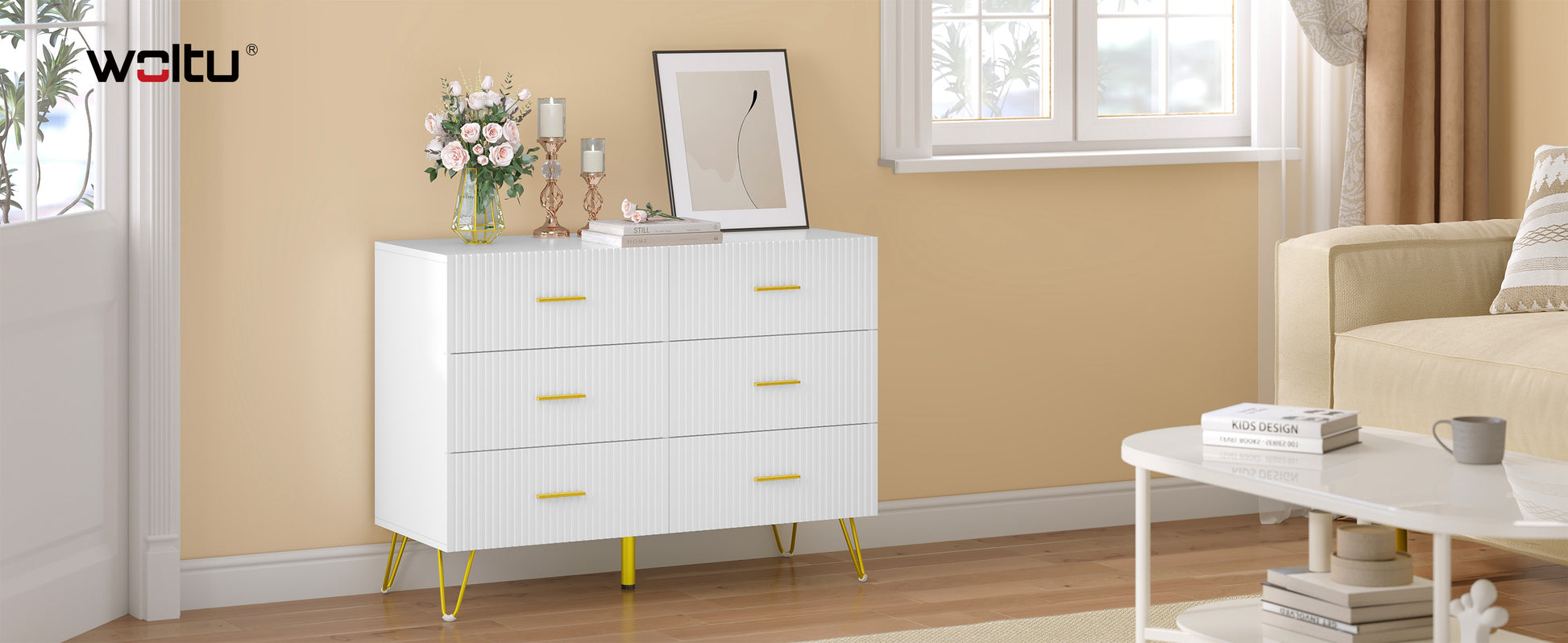 Design elegante: i cassetti bianchi possono essere perfettamente abbinati a piedini in metallo dorato, frontali a cassetti rigati e maniglie dorate. Questo crea una versatile unità di stoccaggio che si adatta facilmente a diversi stili interni ed è un'eccellente decorazione per regalare alla tua stanza un look elegante