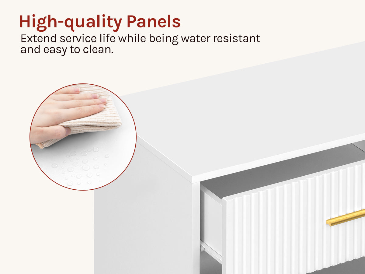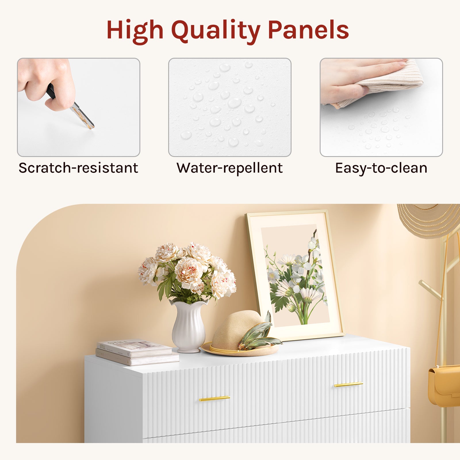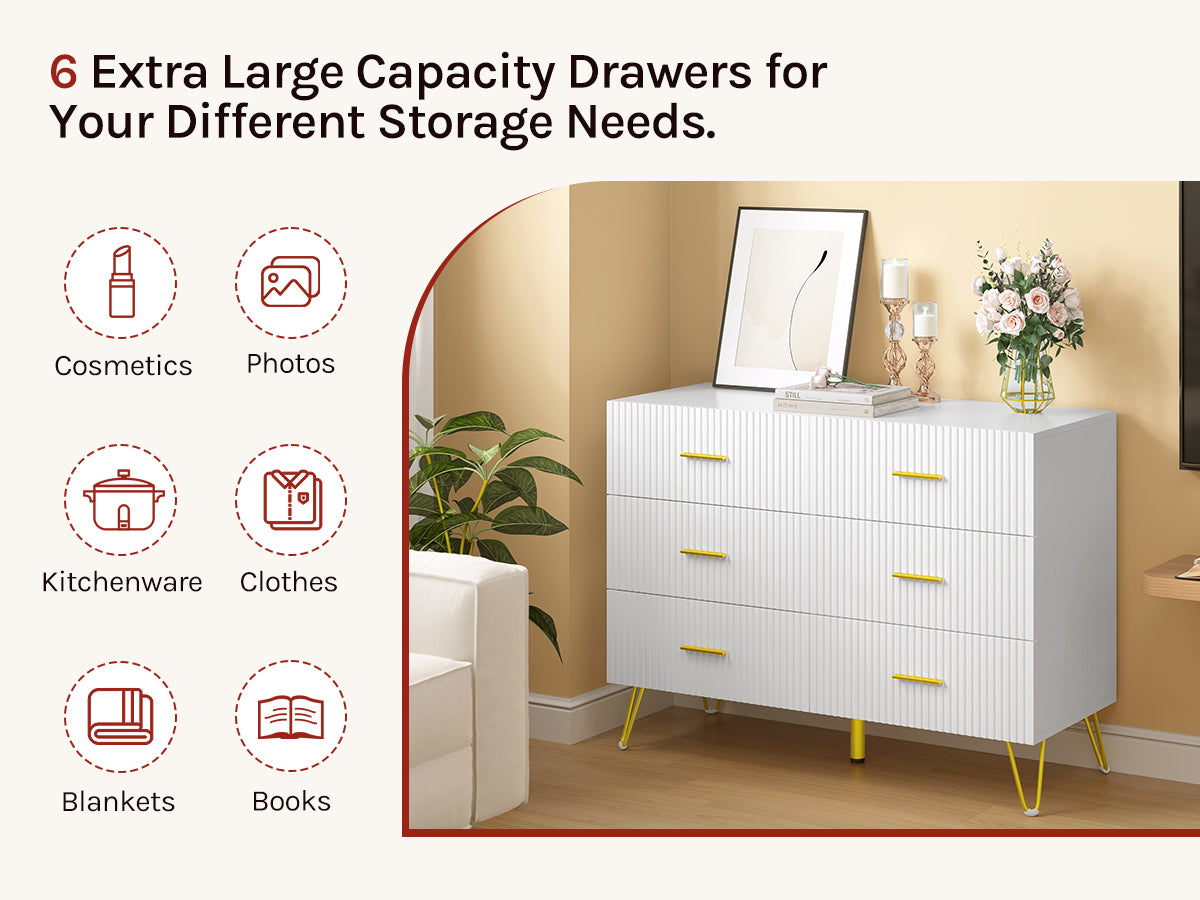 Design elegante: i cassetti bianchi possono essere perfettamente abbinati a piedini in metallo dorato, frontali a cassetti rigati e maniglie dorate. Questo crea una versatile unità di stoccaggio che si adatta facilmente a diversi stili interni ed è un'eccellente decorazione per regalare alla tua stanza un look elegante
