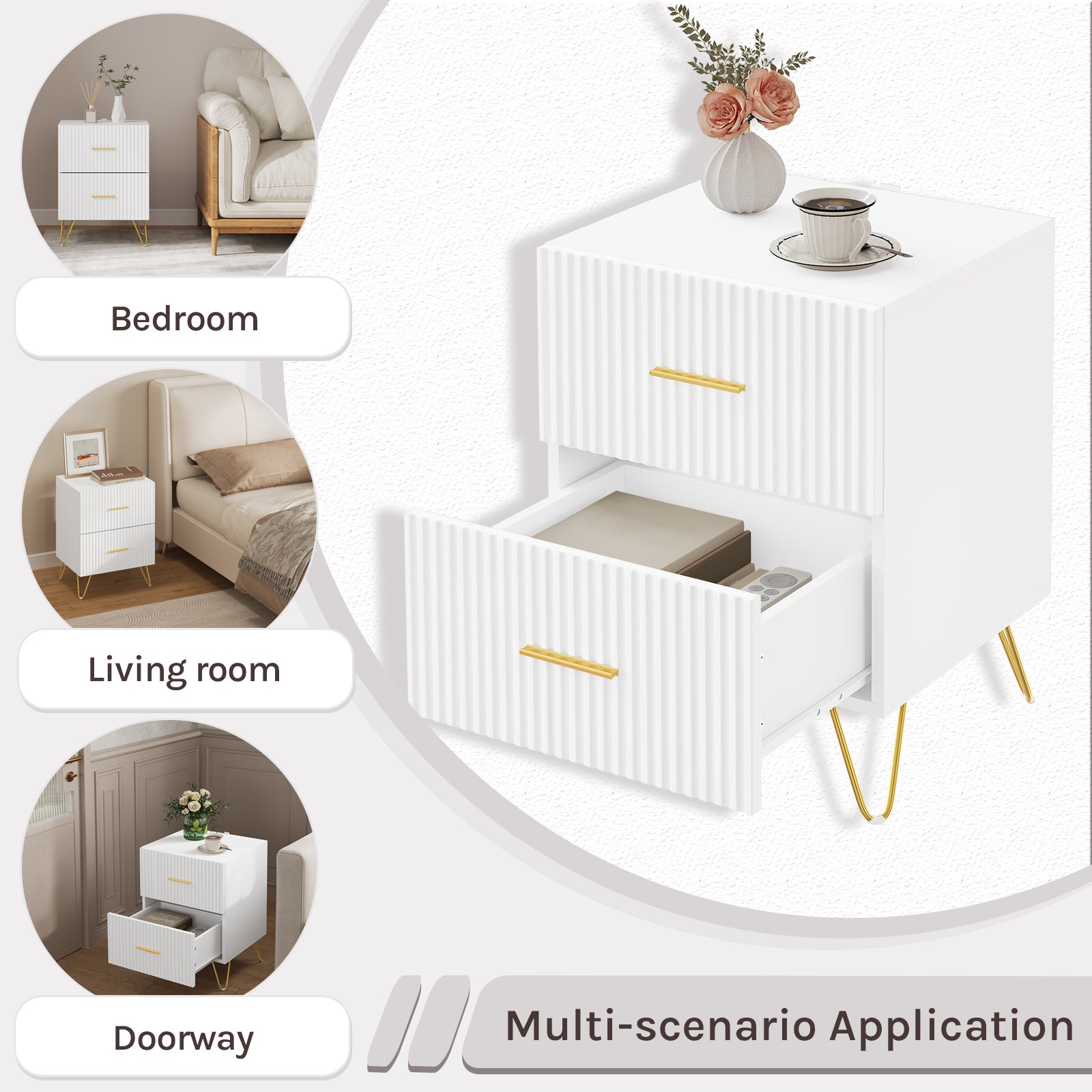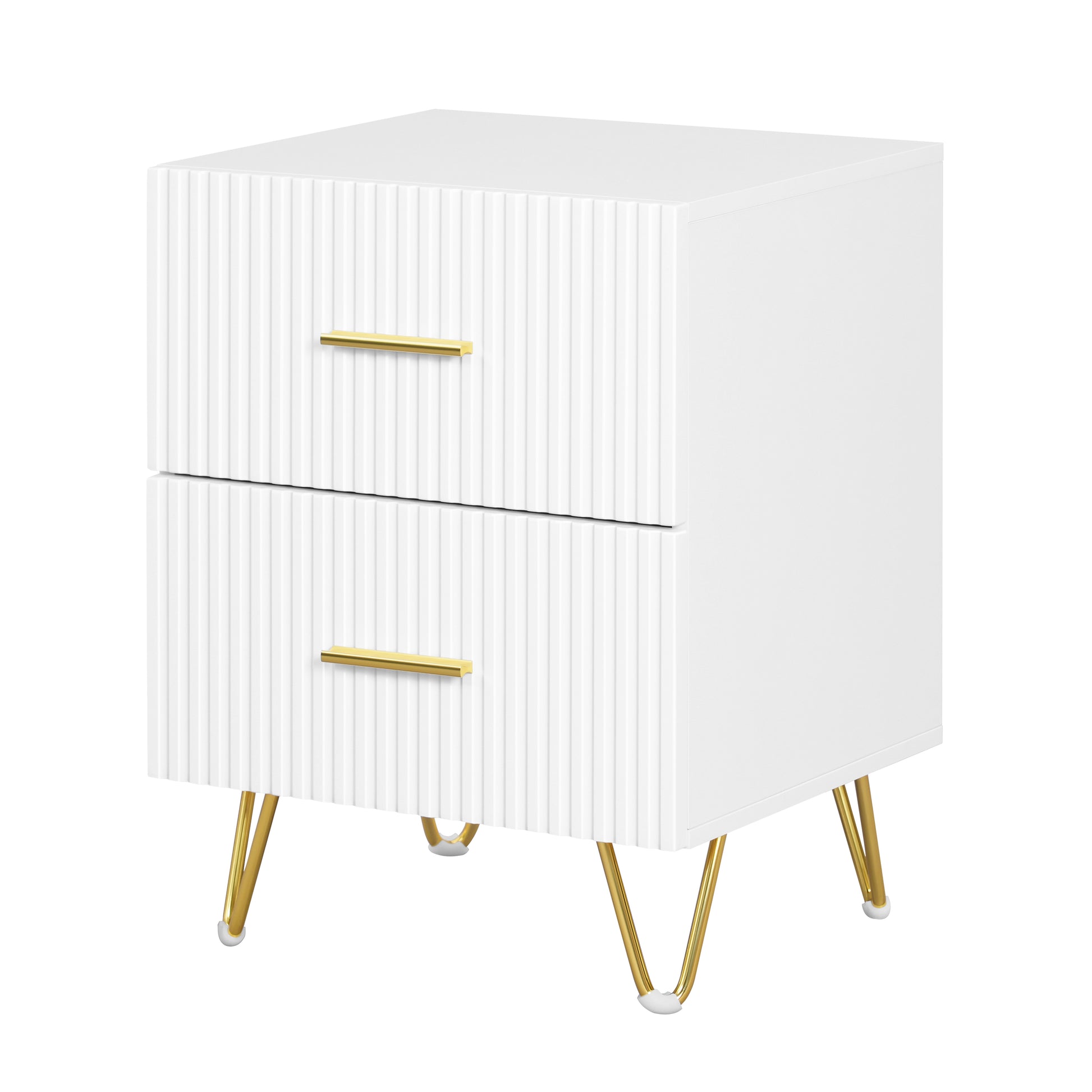 Modello unico: Il comodino è caratterizzato da linee uniche, squisite e verticali con classici pannelli bianchi e maniglie in metallo dorato, dona un tocco di lusso estetico e garantisce facilità d'uso